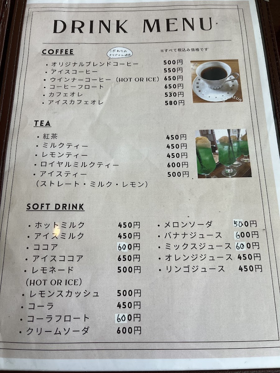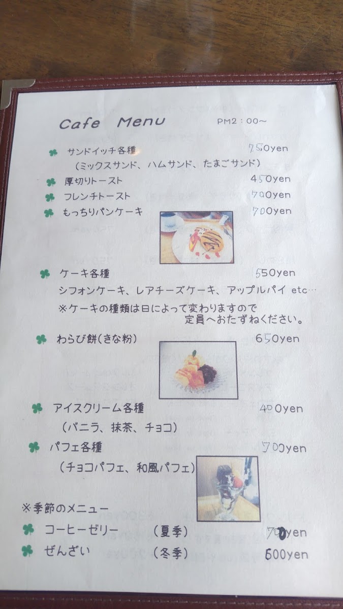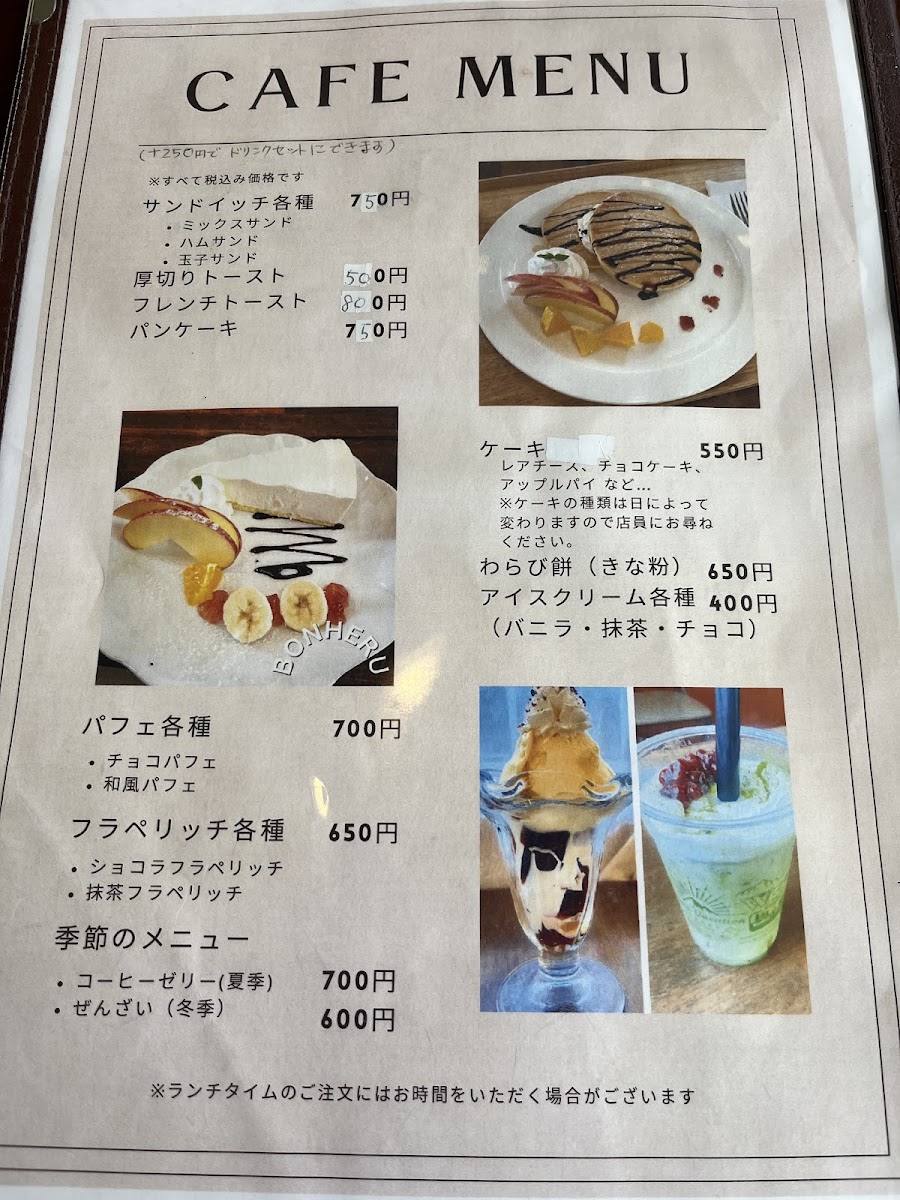 Bonheur offers an enticing morning menu, perfect for starting your day on the right foot. For just JP¥550, indulge in their モーニングセット, which includes crispy toast or a satisfying sandwich, fresh salad, perfectly boiled eggs, seasonal fruit, and your choice of drink. For those who visit later in the day, the lunch menu is equally impressive. Priced at JP¥800, the 日替わりランチ includes a delightful array of daily specials, with options to add dessert and drinks at a modest additional cost.